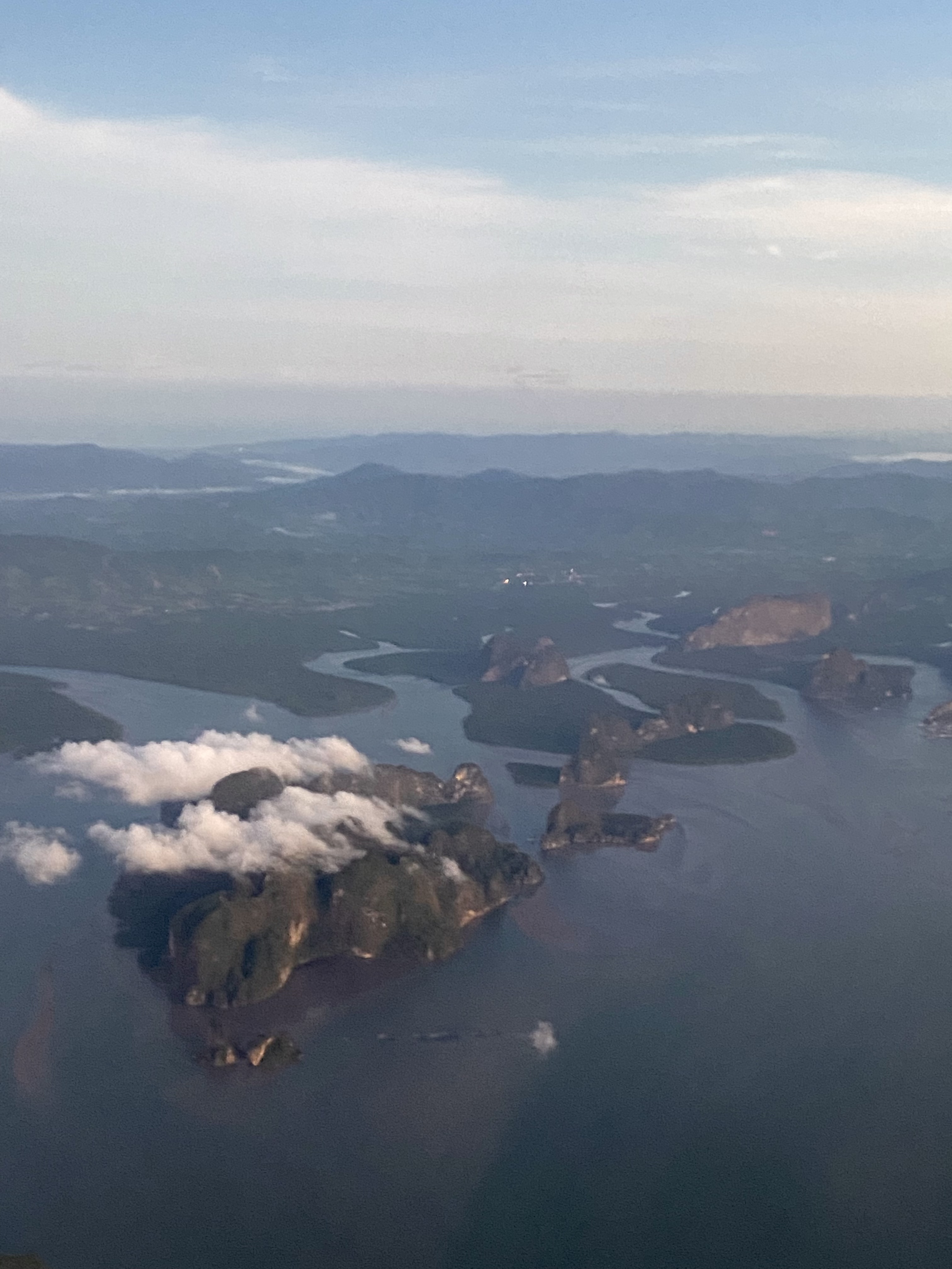 Light breaks over the horizon, amber at first and then slowly illuminating the world. The plane drops lower and I can start to make out land forms – first the coastline and then rivers and estuaries take. Soon enough, dark silhouettes. Unmistakeable. Beneath a few wispy clouds, limestone towers soar skyward from waters of Phang Nga Bay to welcome me back to Thailand.