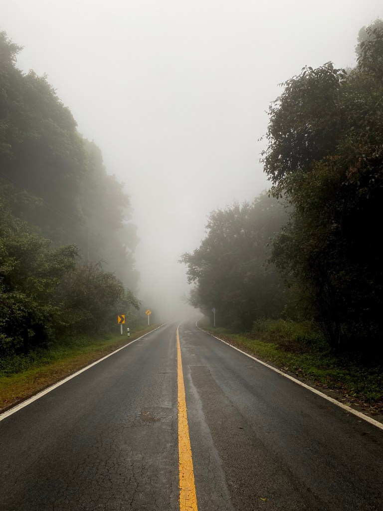 As I make my descent, the weather clears. Even in dry conditions, the roads here pose a challenge: steep downward grades and lots of switchbacks. After the rain, the roadway is covered with a layer of pine needles as slick as ice. Taking a turn too quickly could prove disastrous, so I proceed down the mountain slower than ever. The scenery is stunning, but it’s hard to appreciate as I’m mostly focused on staying upright and alive.