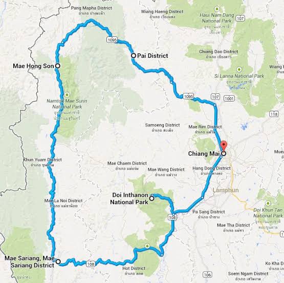The Mae Hong Son Motorbike Loop starts and ends in Chiang Mai. It’s is a 600 kilometer circuit through the mountains of northern Thailand, snaking through verdant jungles and sleepy villages, past the highest point in the country and up along the Burmese border. It’s famous for its curves. Estimates vary because the route differs, but one source puts the total at 4088 turns.