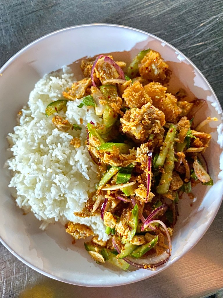 It’s hard to go wrong with noodles in Thailand. Pad Si Ew is also amazing. Fat doughy noodles are stir fried with greens and soy sauce with a choice of pork, chicken, or tofu. Grazie Thai Local Noodle does a good job.