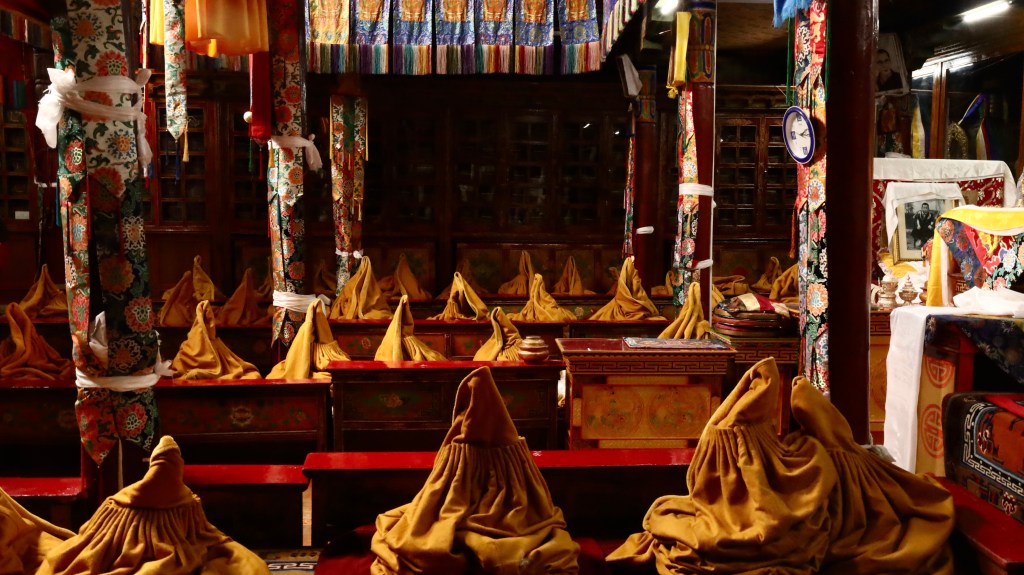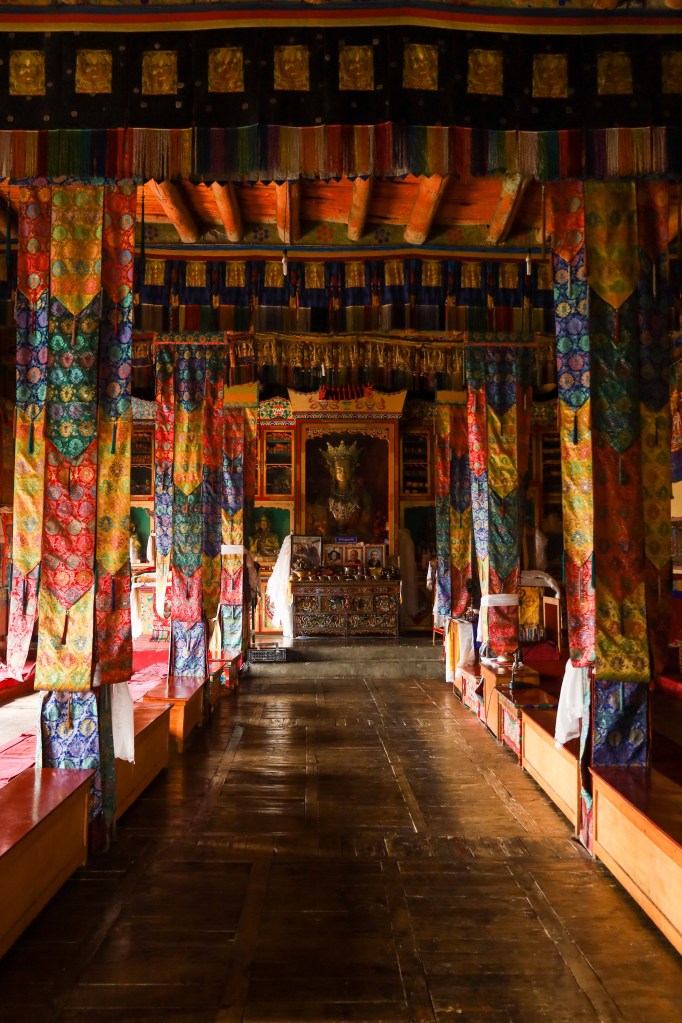 We gather in the dim light of the gompa and the cool afforded by its thick walls. Rinpoche plays a Tibetan drum and a set of cymbals left by the altar. And after a soft, lyrical chant to Manjusri, the bodhisattva of wisdom, we sit together in delicious silence.