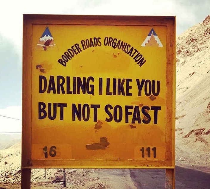 The daunting task of constructing and maintaining the roads in Ladakh goes to the Border Road Organization, or BRO. They patch potholes, build bridges, and install some of the finest signage on the planet.