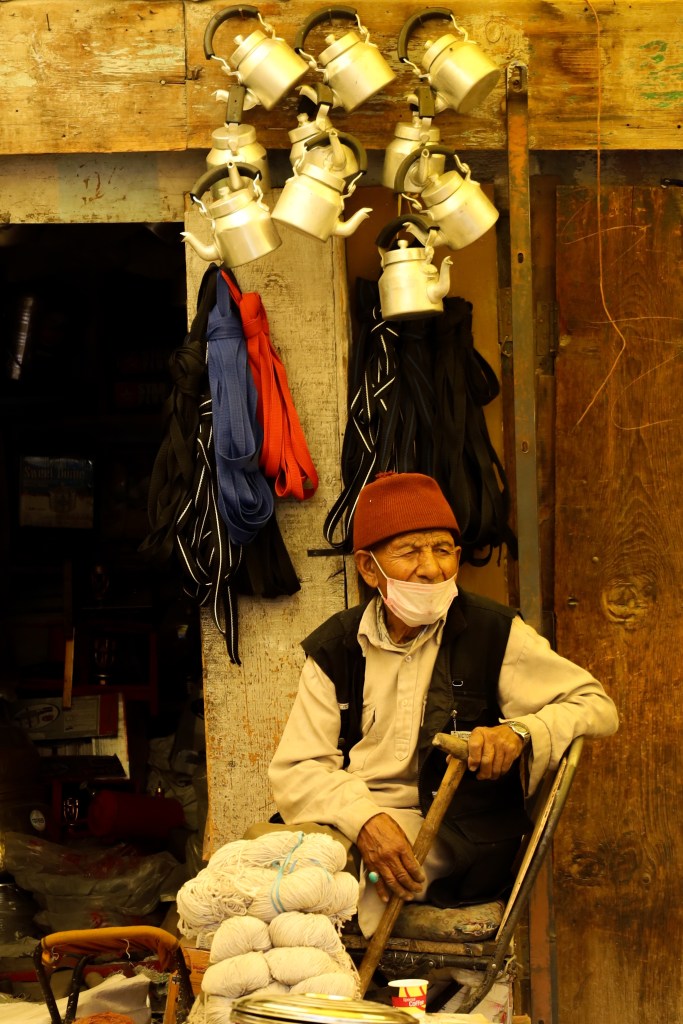 The Ladakhi sky is enormous and the sun is unrelenting. Its glare is amplified by the white washed buildings and treeless mountains that ring the city. In the center of town is the Main Market, a broad pedestrian mall ringed by cafes, hotels, and lots of shops.